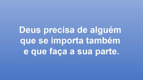 - Deus precisa de alguém que se importa também e que faça a sua parte.
