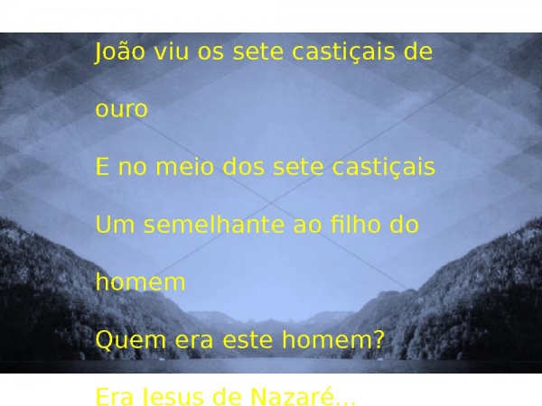 - João viu os sete castiçais de ouroE no meio dos sete castiçaisUm semelhante ao filho do homemQuem era este homem? Era Jesus de Nazaré...