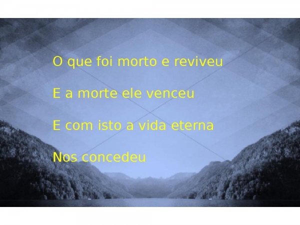 - O que foi morto e reviveuE a morte ele venceuE com isto a vida eterna Nos concedeu