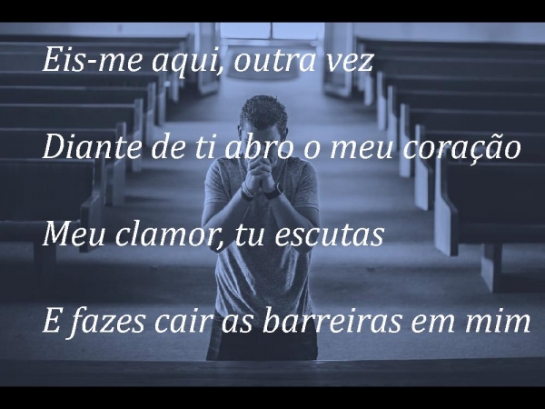 - Eis-me aqui, outra vezDiante de ti abro o meu coraçãoMeu clamor, tu escutasE fazes cair as barreiras em mim