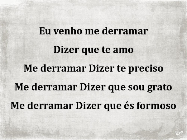 - Eu venho me derramarDizer que te amoMe derramar Dizer te precisoMe derramar Dizer que sou gratoMe derramar Dizer que és formoso