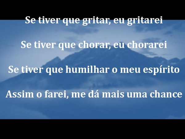 - Se tiver que gritar, eu gritareiSe tiver que chorar, eu chorareiSe tiver que humilhar o meu espíritoAssim o farei, me dá mais uma chance