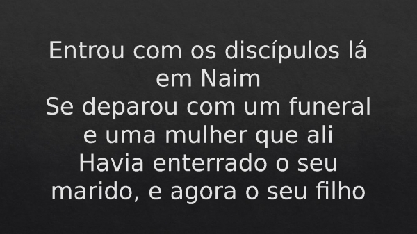 - Entrou com os discípulos lá em NaimSe deparou com um funeral e uma mulher que aliHavia enterrado o seu marido, e agora o seu filho