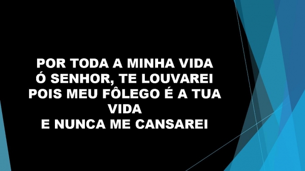 - POR TODA A MINHA VIDAÓ SENHOR, TE LOUVAREIPOIS MEU FÔLEGO É A TUA VIDAE NUNCA ME CANSAREI