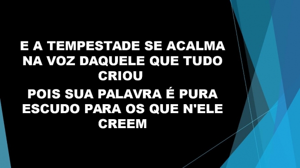 - E A TEMPESTADE SE ACALMA NA VOZ DAQUELE QUE TUDO CRIOU POIS SUA PALAVRA É PURA ESCUDO PARA OS QUE N'ELE CREEM