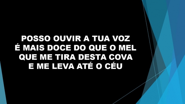 - POSSO OUVIR A TUA VOZÉ MAIS DOCE DO QUE O MELQUE ME TIRA DESTA COVAE ME LEVA ATÉ O CÉU