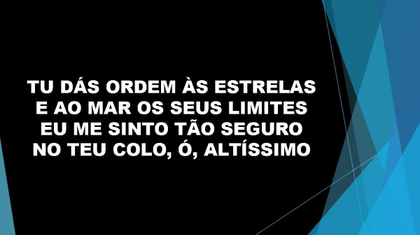 - TU DÁS ORDEM ÀS ESTRELASE AO MAR OS SEUS LIMITESEU ME SINTO TÃO SEGURONO TEU COLO, Ó, ALTÍSSIMO