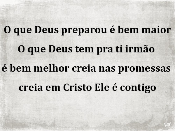 - O que Deus preparou é bem maiorO que Deus tem pra ti irmão é bem melhor creia nas promessas creia em Cristo Ele é contigo