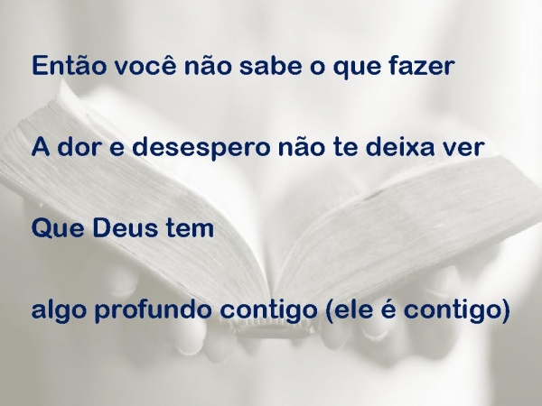 - Então você não sabe o que fazerA dor e desespero não te deixa verQue Deus tem algo profundo contigo (ele é contigo)