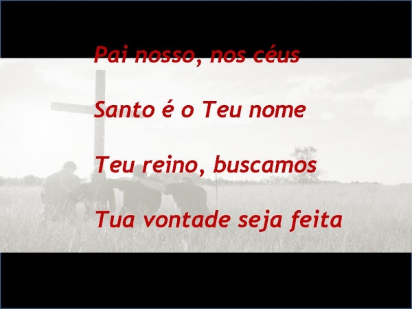 - Pai nosso, nos céusSanto é o Teu nomeTeu reino, buscamosTua vontade seja feita