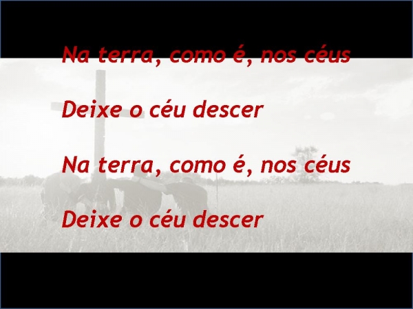 - Na terra, como é, nos céusDeixe o céu descerNa terra, como é, nos céusDeixe o céu descer