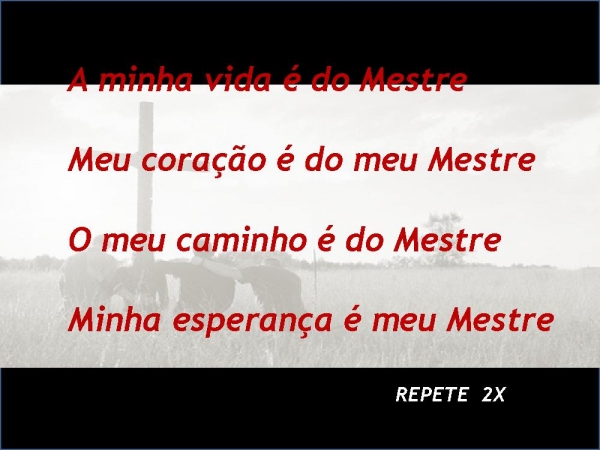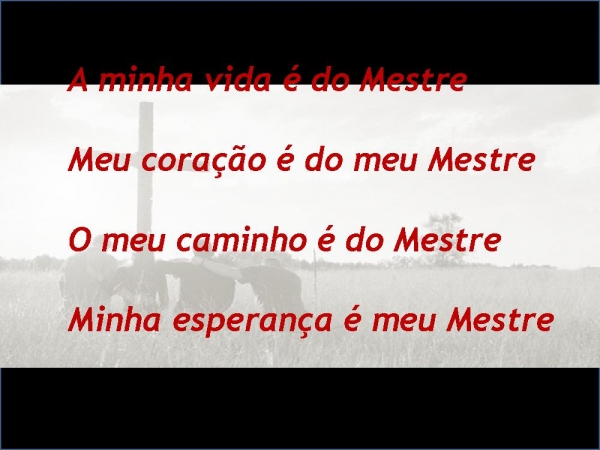 - A minha vida é do MestreMeu coração é do meu MestreO meu caminho é do MestreMinha esperança é meu Mestre