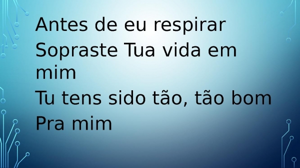 - Antes de eu respirarSopraste Tua vida em mimTu tens sido tão, tão bom Pra mim