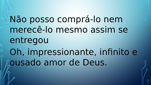 - Não posso comprá-lo nem merecê-lo mesmo assim se entregouOh, impressionante, infinito e ousado amor de Deus.