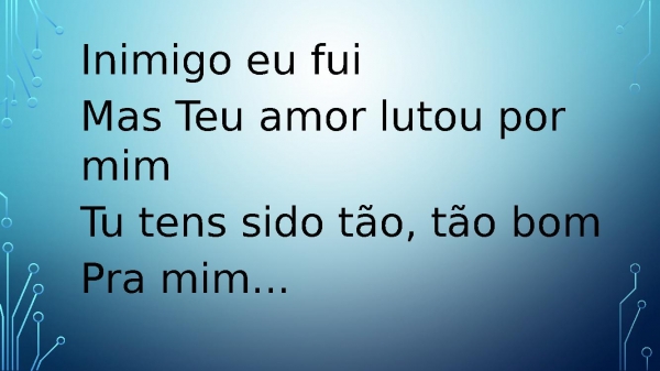 - Inimigo eu fuiMas Teu amor lutou por mimTu tens sido tão, tão bom Pra mim...