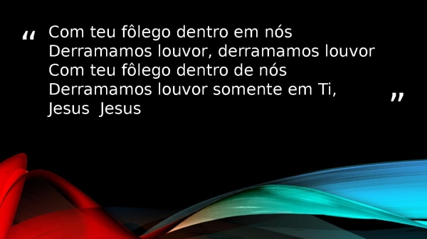 - Com teu fôlego dentro em nósDerramamos louvor, derramamos louvorCom teu fôlego dentro de nósDerramamos louvor somente em Ti, Jesus Jesus