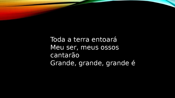- Toda a terra entoaráMeu ser, meus ossos cantarãoGrande, grande, grande é