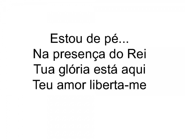 - Estou de pé...Na presença do ReiTua glória está aquiTeu amor liberta-me