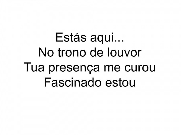 - Estás aqui...No trono de louvorTua presença me curouFascinado estou