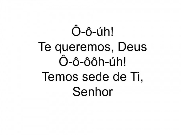 - Ô-ô-úh!Te queremos, DeusÔ-ô-ôôh-úh!Temos sede de Ti, Senhor