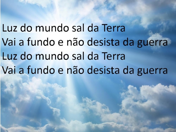 - Luz do mundo sal da TerraVai a fundo e não desista da guerraLuz do mundo sal da TerraVai a fundo e não desista da guerra
