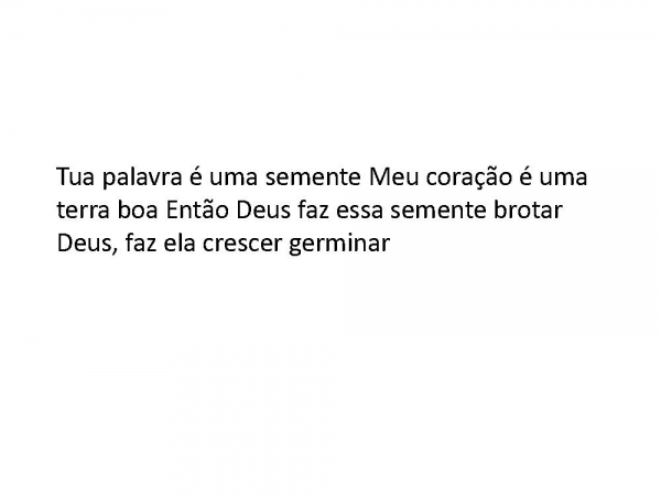 - Tua palavra é uma semente Meu coração é uma terra boa Então Deus faz essa semente brotar Deus, faz ela crescer germinar