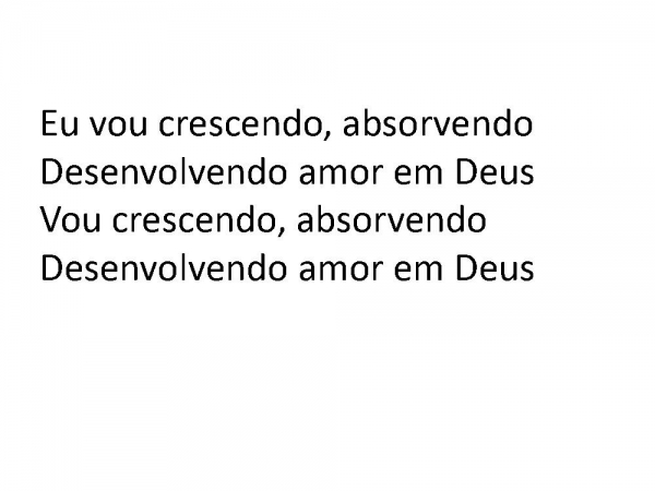 - Eu vou crescendo, absorvendoDesenvolvendo amor em DeusVou crescendo, absorvendoDesenvolvendo amor em Deus