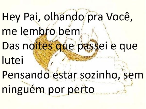 - Hey Pai, olhando pra Você, me lembro bemDas noites que passei e que luteiPensando estar sozinho, sem ninguém por perto