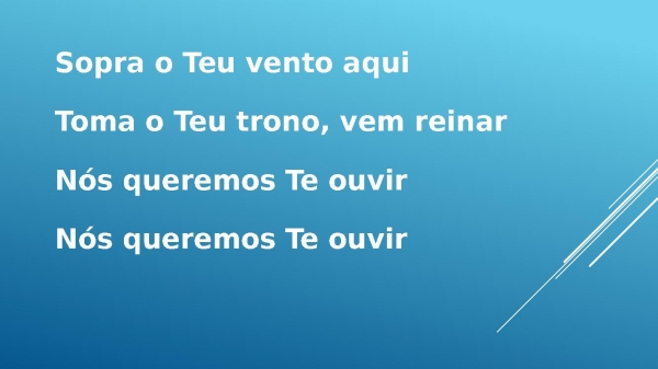 - Sopra o Teu vento aquiToma o Teu trono, vem reinarNós queremos Te ouvirNós queremos Te ouvir