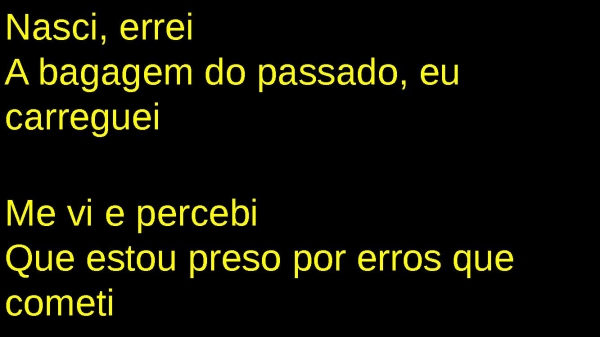 - Nasci, erreiA bagagem do passado, eu carregueiMe vi e percebiQue estou preso por erros que cometi