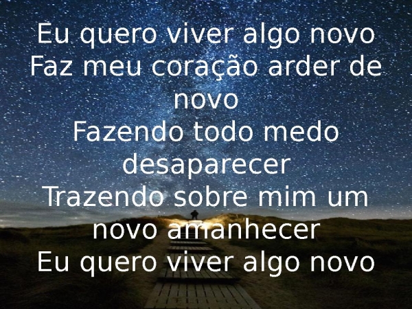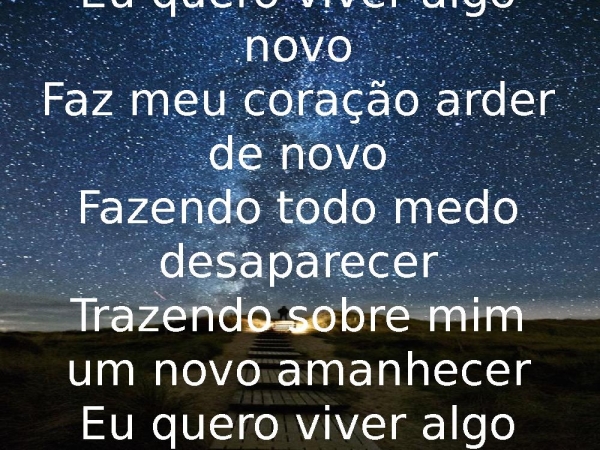 - Eu quero viver algo novoFaz meu coração arder de novoFazendo todo medo desaparecerTrazendo sobre mim um novo amanhecerEu quero viver algo novo