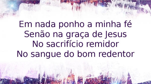 - Em nada ponho a minha féSenão na graça de JesusNo sacrifício remidorNo sangue do bom redentor