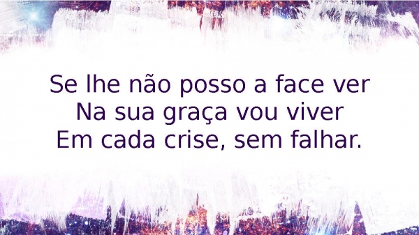 - Se lhe não posso a face verNa sua graça vou viverEm cada crise, sem falhar.