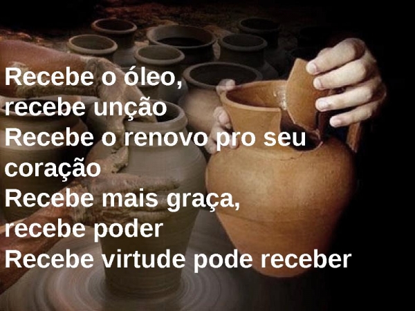 - Recebe o óleo,recebe unçãoRecebe o renovo pro seu coraçãoRecebe mais graça,recebe poderRecebe virtude pode receber