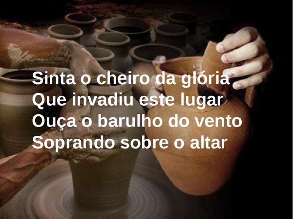 - Sinta o cheiro da glóriaQue invadiu este lugarOuça o barulho do ventoSoprando sobre o altar