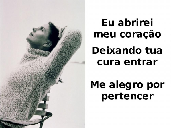 - Eu abrirei meu coraçãoDeixando tua cura entrarMe alegro por pertencer