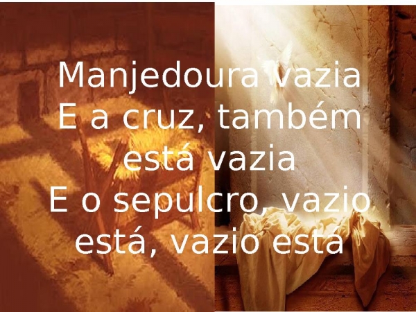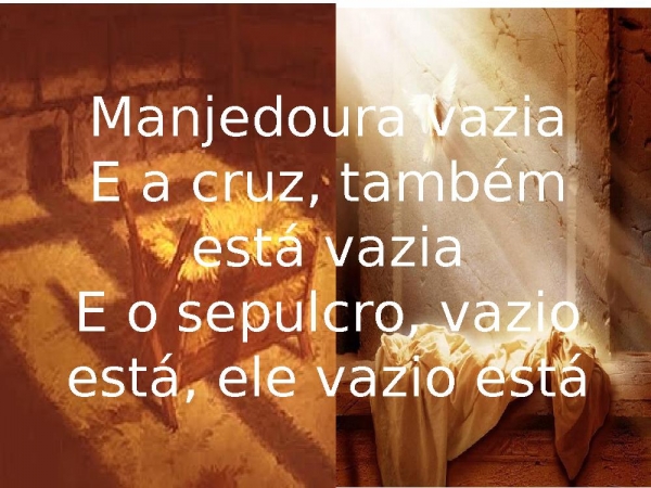 - Manjedoura vaziaE a cruz, também está vaziaE o sepulcro, vazio está, vazio está