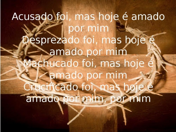 - Acusado foi, mas hoje é amado por mimDesprezado foi, mas hoje é amado por mimMachucado foi, mas hoje é amado por mimCrucificado foi, mas hoje é amado por mim, por mim