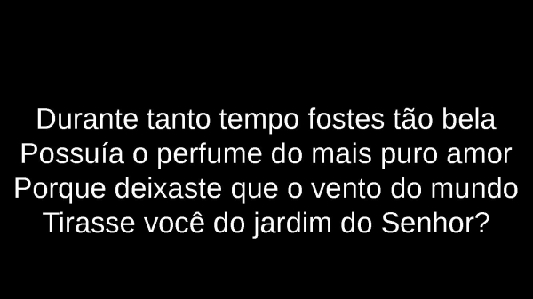 - Durante tanto tempo fostes tão belaPossuía o perfume do mais puro amorPorque deixaste que o vento do mundoTirasse você do jardim do Senhor?
