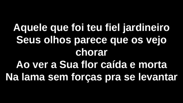- Aquele que foi teu fiel jardineiroSeus olhos parece que os vejo chorarAo ver a Sua flor caída e mortaNa lama sem forças pra se levantar
