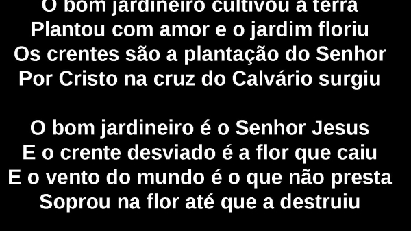 - O bom jardineiro cultivou a terraPlantou com amor e o jardim floriuOs crentes são a plantação do SenhorPor Cristo na cruz do Calvário surgiuO bom jardineiro é o Senhor JesusE o crente desviado é a flor que caiuE o vento do mundo é o que não prestaSoprou na flor até que a destruiu