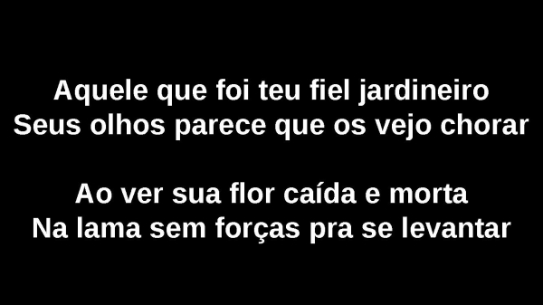 - Aquele que foi teu fiel jardineiroSeus olhos parece que os vejo chorarAo ver sua flor caída e mortaNa lama sem forças pra se levantar
