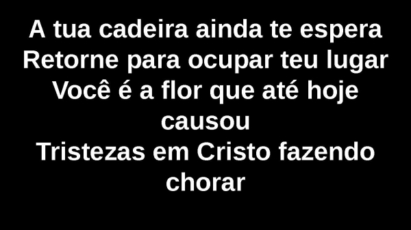 - A tua cadeira ainda te esperaRetorne para ocupar teu lugarVocê é a flor que até hoje causouTristezas em Cristo fazendo chorar