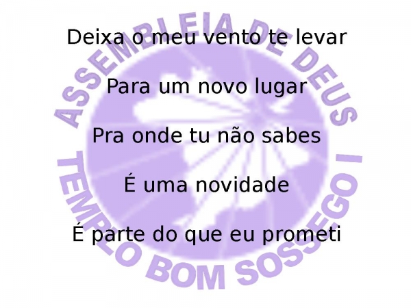 - Deixa o meu vento te levarPara um novo lugarPra onde tu não sabesÉ uma novidadeÉ parte do que eu prometi