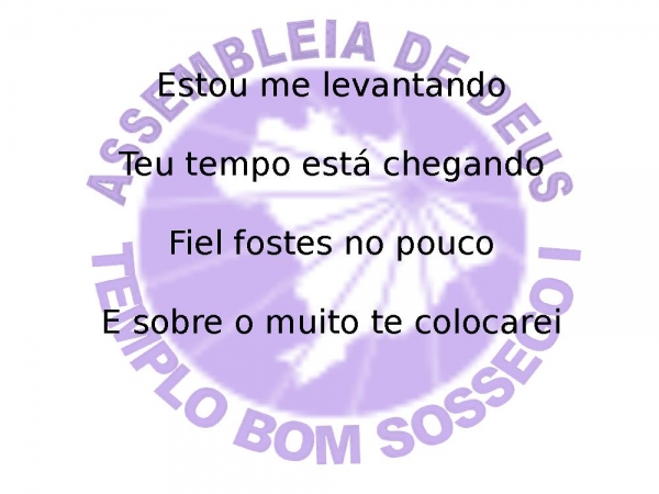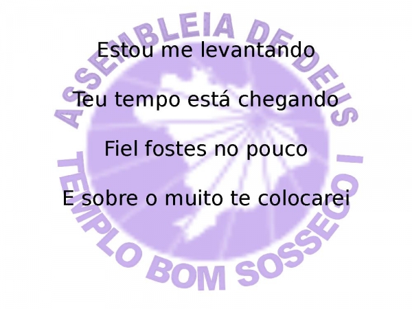 - Estou me levantandoTeu tempo está chegandoFiel fostes no poucoE sobre o muito te colocarei