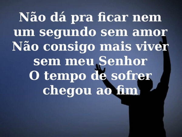 - Não dá pra ficar nem um segundo sem amorNão consigo mais viver sem meu SenhorO tempo de sofrer chegou ao fim