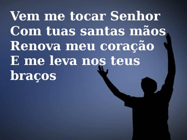- Vem me tocar SenhorCom tuas santas mãosRenova meu coraçãoE me leva nos teus braços