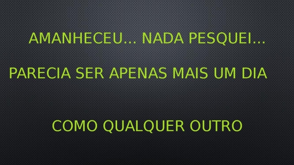 - Amanheceu... Nada pesquei...Parecia ser apenas mais um dia como qualquer outro