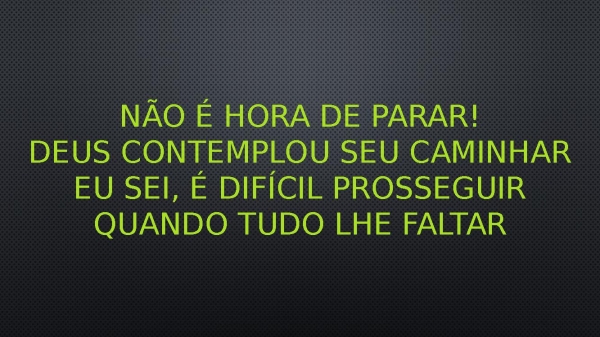 - NÃO É HORA de parar!Deus contemplou seu caminharEu sei, é difícil prosseguirQuando tudo lhe faltar