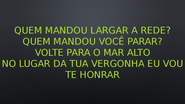 - Quem mandou largar a rede?Quem mandou você parar?Volte para o mar altoNo lugar da tua vergonha Eu vou te honrar